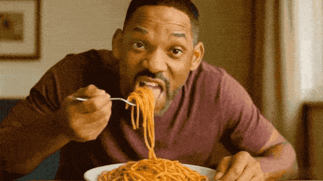 还有经典的威尔.史密斯吃面环节,有点黑猫警长的感觉了,这「眼睛瞪得像铜铃」。不过图生视频对比文生视频,AI 的恐怖谷效应和不真实感,确实减少了很多。