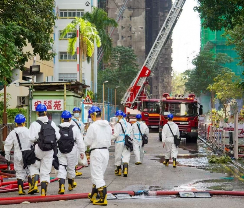 同日,国家消防救援局指导广东省消防救援总队主动对接广东省委港澳办和香港消防处,积极提供人员搜救、战勤保障等各方面支持,应港方请求,已支援2架照明无人机、8架双光侦察无人机、20套机械外骨骼装备、1680双灭火救援靴,并在深圳市罗湖区莲塘口岸与香港消防处完成交接。